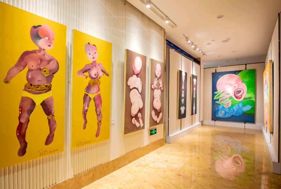 他從不把自己定位在某種藝術類別里,唯一能夠辨認其創(chuàng)作概念的只有“當代”一詞,他將自己靈魂深處的叛逆與當代藝術的批判精神結合,通過鮮艷的色彩表達出來。畫面中那些擁有怪異表情、扭曲肢體,樣貌分崩離析的“人”,帶給觀眾的是獨樹一幟的視覺感觸,同時也呼應著作者內(nèi)心的沖突與思考。