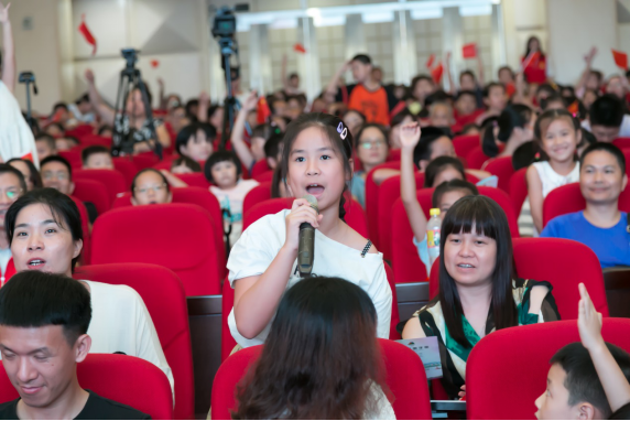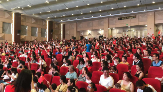 接下來,為進(jìn)一步增強(qiáng)青少年兒童的愛國意識,主辦方將戲劇教育與愛國教育有機(jī)融合,于文明知識問答后,邀請近千名觀眾一起舞動小紅旗,齊聲唱響《我和我的祖國》,點(diǎn)燃了在場每一位觀眾的愛國熱情,觀眾們跟隨著旋律,共同歌唱祖國,深情祝福祖國明天更加輝煌。