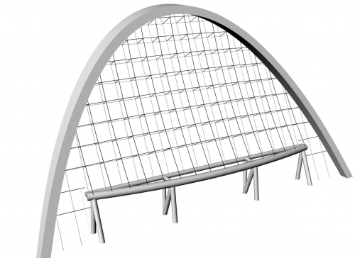 該標(biāo)段施工負(fù)責(zé)人透露,這種傾斜幕墻與90度垂直地面的幕墻相比,安裝難度呈指數(shù)型增長,由于難度系數(shù)過高,目前國內(nèi)還未出現(xiàn)過相同案例。為成功安裝這面傾斜幕墻并保證其的穩(wěn)固性,專家們經(jīng)過重重研究與實驗,最終決定采用雙層索網(wǎng)系統(tǒng):內(nèi)外兩層分別采用兩種直徑的不銹鋼拉索,嚴(yán)格按照精密計算的參數(shù)橫豎向拉緊,分別呈外凸?fàn)詈蛢?nèi)凹狀,最后用螺桿連接以錨固整面拉索玻璃幕墻。