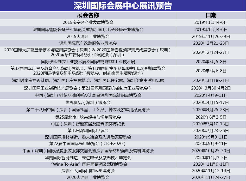 多場(chǎng)重磅展會(huì)將登陸深圳國際會(huì)展中心
