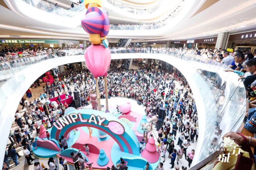 另一個(gè)是壹方城自行設(shè)計(jì)的6大自有IP——UNIPLAY家族,6個(gè)IP形象萌態(tài)可掬,受到了消費(fèi)者的普遍認(rèn)可。壹方城還通過制作公仔、帆布袋等實(shí)用IP周邊,以及與國(guó)際一線化妝品LANC?ME以及喜茶、潮宏基、來電、我是酸奶君等品牌聯(lián)名,巧妙加深與消費(fèi)者的情感鏈接,成就獨(dú)特的壹方記憶。