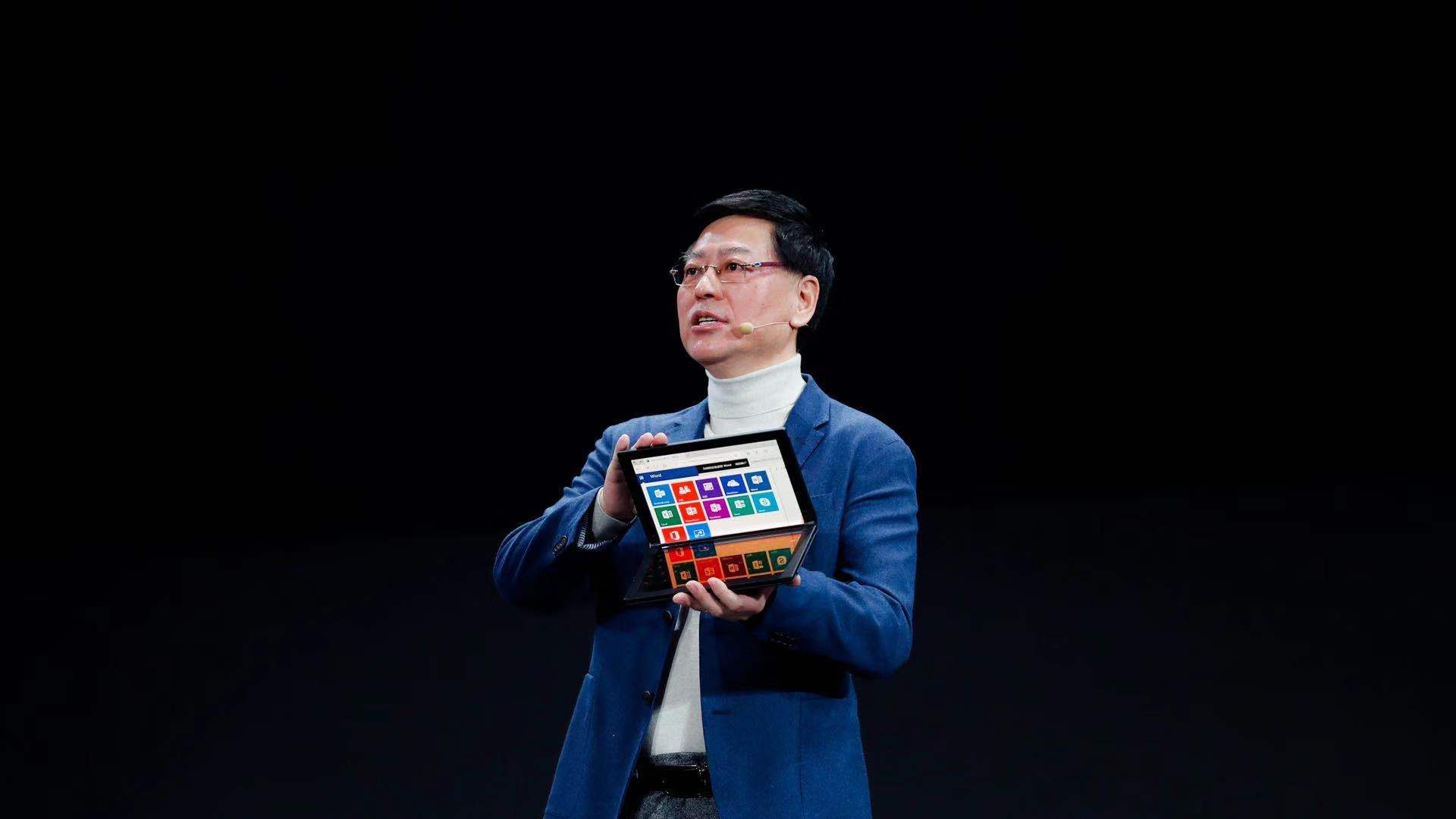 楊元慶現(xiàn)場(chǎng)展示全球首款折疊屏筆記本電腦ThinkPad X1