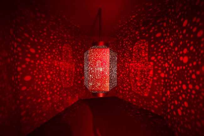 在這奇妙的光影空間,光影由中央向四周擴(kuò)散,循環(huán)往復(fù),好似漫天煙花綻放,絕美絢爛、精彩絕倫。同時滿載美好祝愿的紅燈籠明暗變化,盡享沉浸式視覺體驗。