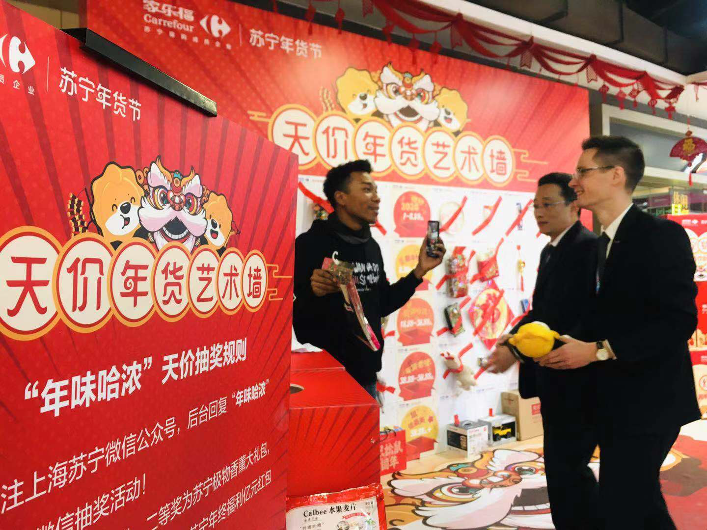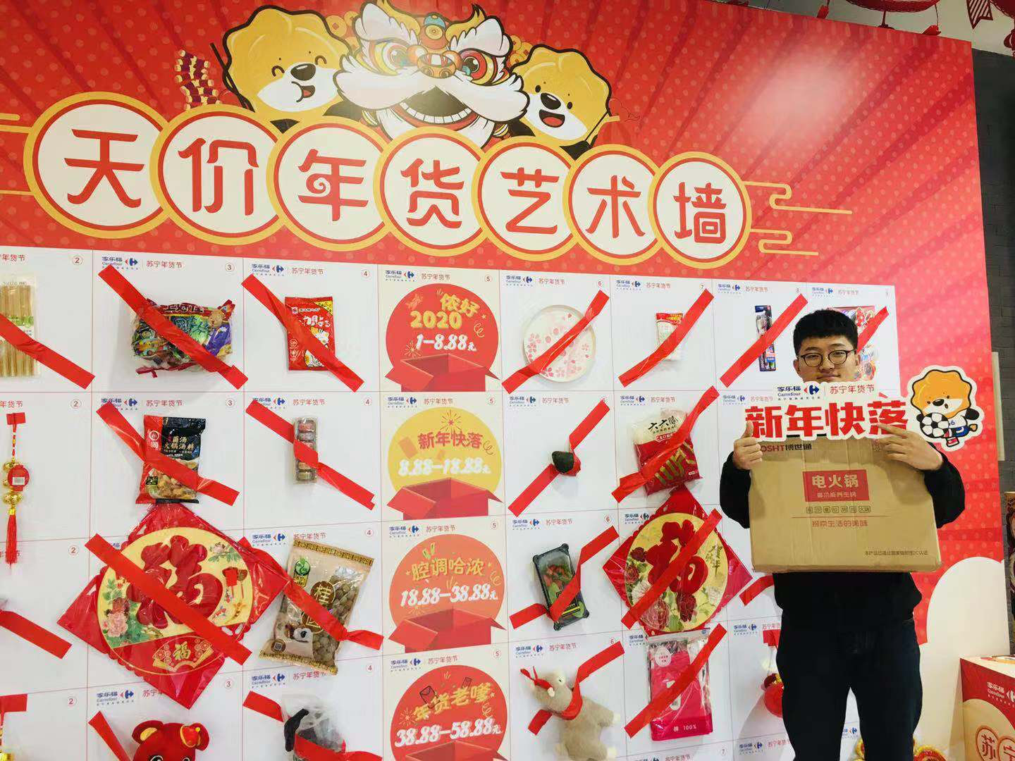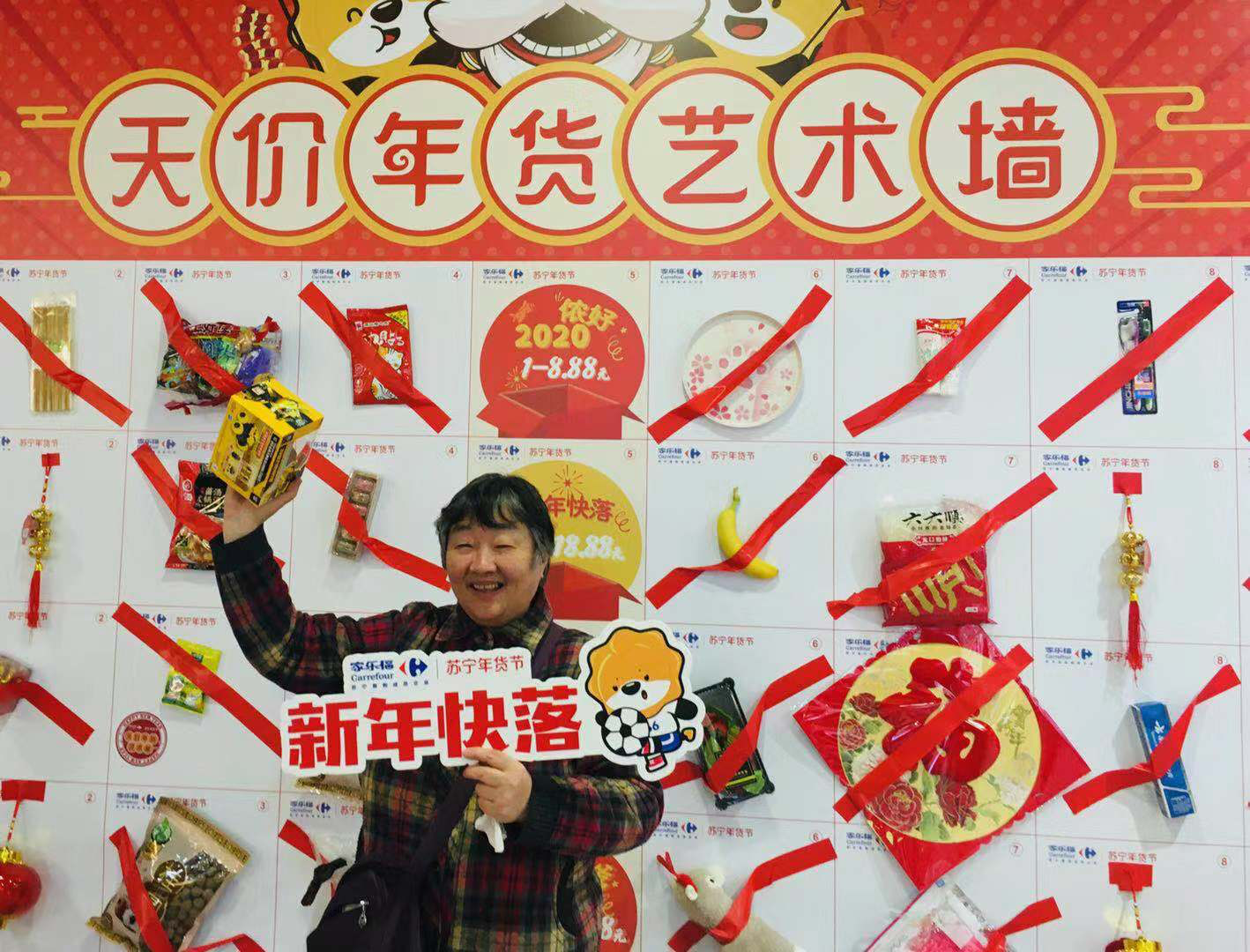 1月10日上午,記者來(lái)到家樂(lè)福“年味哈濃”天價(jià)年貨藝術(shù)墻的活動(dòng)現(xiàn)場(chǎng),眾多市民正想躍躍欲試。記者發(fā)現(xiàn),在天價(jià)年貨藝術(shù)墻上,有儂好2020、新年快落、腔調(diào)哈濃、年貨老嗲、“鼠”儂最美五類(lèi)天價(jià)年貨。