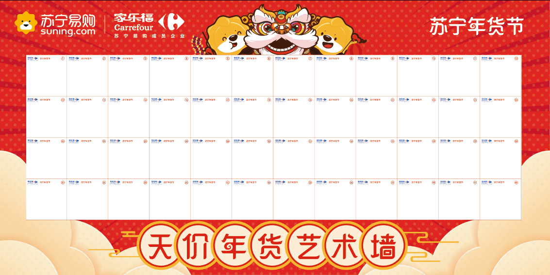 家樂福華南區(qū)相關(guān)負(fù)責(zé)人表示,“天價年貨藝術(shù)墻”結(jié)合當(dāng)前最受關(guān)注的天價藝術(shù)這個熱門話題,融入春節(jié)傳統(tǒng)中國人講究的福氣、運(yùn)氣等元素,讓參與者通過深度互動,享受寓購于樂的購物體驗。
