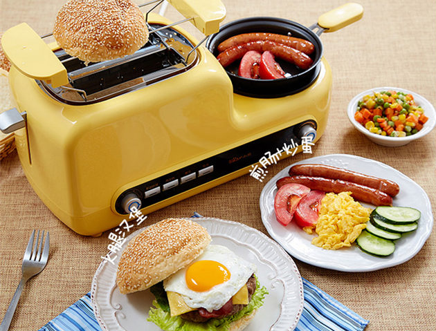 在時間匆忙的早上,要想同時完成烤面包、煎培根、煎雞蛋等操作,卻還要用到多種電器才能完成,又費時又顯忙亂。這時,一臺具備了烘、煎、烤、蒸、烙五種功能的小熊多士爐DSL-A02Z1就可輕松解決早餐問題。一邊烤土司,一邊用煎盤煎雞蛋和培根,整個過程只需5分鐘,便可完成一份美味三明治。吐司焦香,培根與雞蛋熱氣騰騰,搭配一兩片脆生菜,一口下去,便是滿滿的“小幸福”。