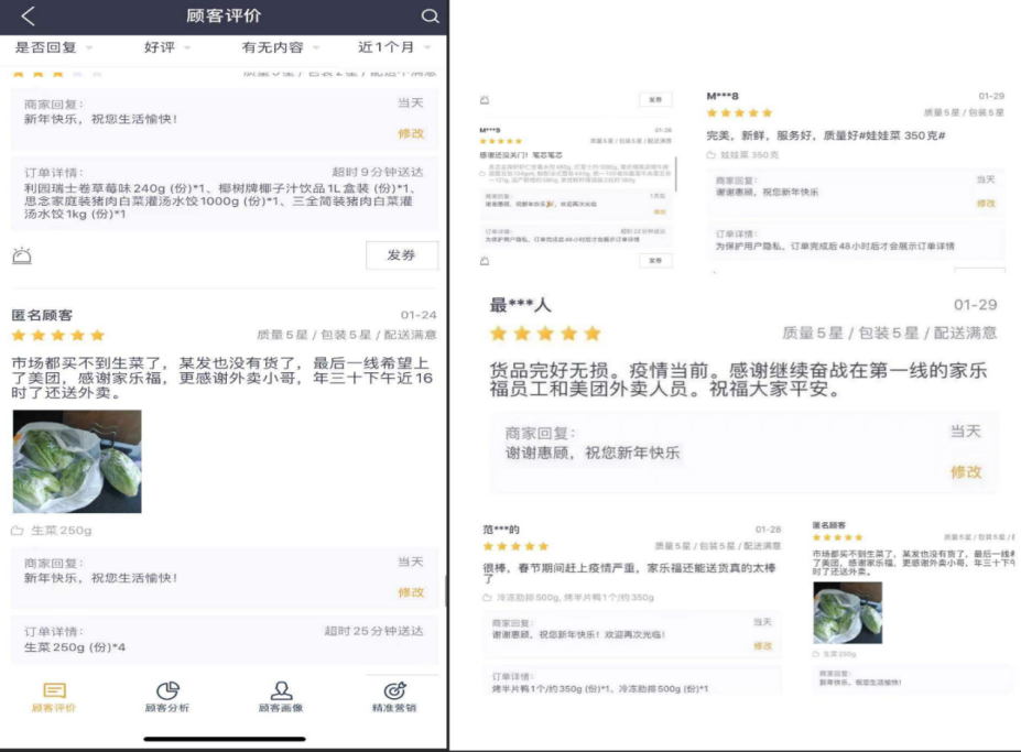 揀貨、核對訂單、打包、再次確認商品無誤,在規(guī)定時間內(nèi)將商品給到外賣騎手……這是一項挑戰(zhàn)體力與腦力的“細致活”。為了維持家樂?!?公里內(nèi)、1小時速達的配送到家”服務順利運作,每天,家樂福門店的電商主管還需要協(xié)調(diào)不同部門的值班員工通力合作。由于春節(jié)期間人員緊缺,超市一線員工幾乎每天都在與時間賽跑?!耙圆蛔儜f變,在這場戰(zhàn)役中不斷的完善不斷的調(diào)整,每一分每一秒都是十足寶貴的?!秉S福填說,雖然沒有回家過年,但看到顧客們一致的好評留言,自己心里非常高興?!邦櫩偷暮迷u就是對我們工作的最大鼓勵和認可?!?/p>