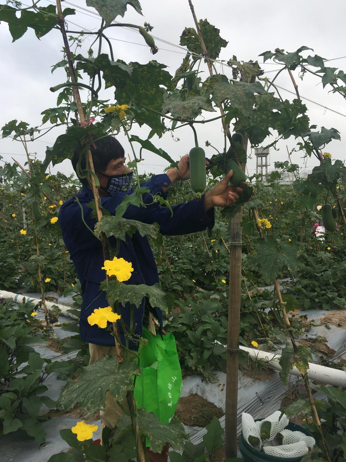 “前幾天,我們?nèi)ズ?诿捞m區(qū)大致坡萬眾農(nóng)合社采購了農(nóng)戶滯銷的絲瓜和圓茄,絲瓜每斤1.5元,圓茄每斤1元。在疫情沒來之前,圓茄采購價(jià)大概也要3.5 -4元每斤,絲瓜5 -6元每斤。這次進(jìn)貨價(jià)的降幅高達(dá)75%?!奔覙犯HA南區(qū)蔬果采購部長孟毅介紹到。