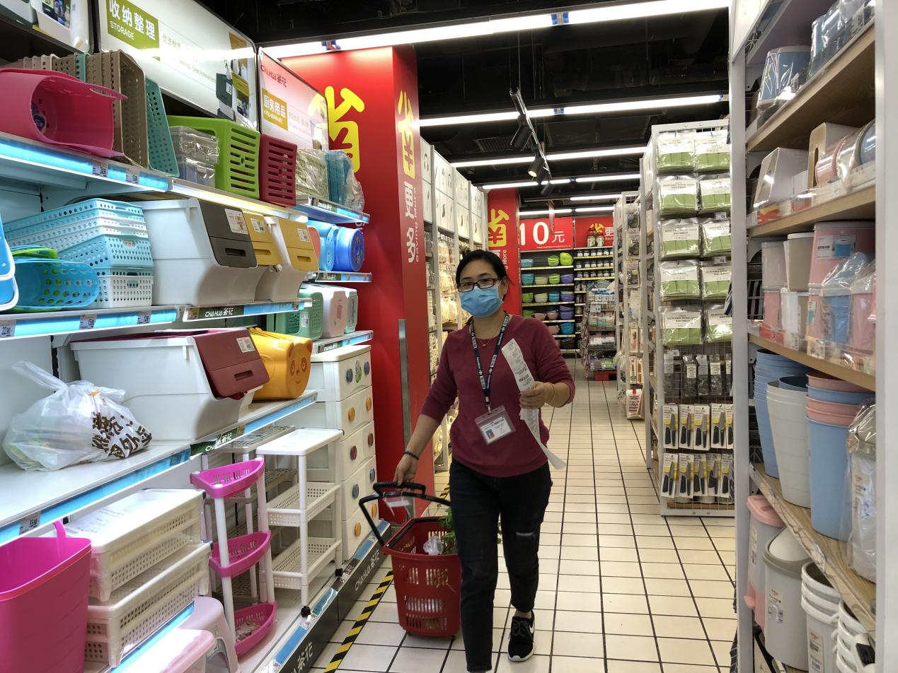 “現在手上這個單有24個商品需要揀貨,這還不算大單,我們有接到過一單上百個商品的,還有總價超過3000元的訂單呢。家樂福梅林店的賣場面積大概是5000平方米,每天上下2層樓跑多少趟具體倒是沒有統計過,但像現在特殊時期,我們一天在網上接到的‘配送到家’服務訂單基本都要超過800單,有時候會到1000單?!?/p>