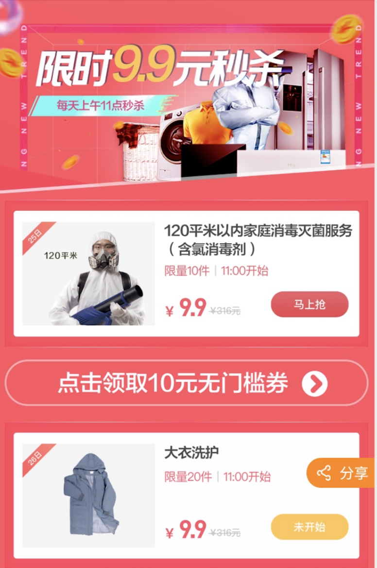 見圳客戶端·深圳新聞網(wǎng)2020年3月27日訊 忙于朝九晚五的工作與家中的柴米油鹽,家中的家務(wù)活就顯得有些力不從心。日常的小家務(wù)還好,大件清洗、家電保養(yǎng)就成了頭疼事。近日,不少深圳市民都找到了“忙里偷閑”的新招,那就是在蘇寧小店生活幫中搶購低價服務(wù)專項。目前,蘇寧小店生活幫每天都將推出一款9.9元限量生活幫服務(wù),涵蓋家電清洗、沙發(fā)套洗護、全屋消毒以及冬衣洗護等業(yè)務(wù)。