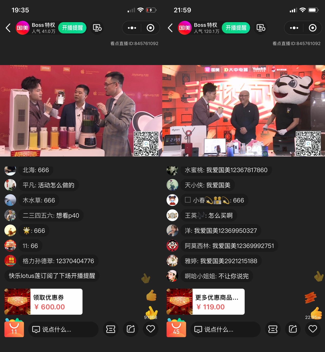 通過持續(xù)不斷地開展直播活動(dòng),國美在直播營銷方面已積累諸多經(jīng)驗(yàn),這種經(jīng)驗(yàn)也在實(shí)踐中為國美帶來了流量與銷售的提升。以近期國美開展的“黑色星期伍”大促為例,活動(dòng)期間,國美美店社群營銷全國直播活動(dòng)超千場(chǎng),美店銷售額同比提升50.9%,銷售單品值提升44.2%,美店流量同比提升18.39%。