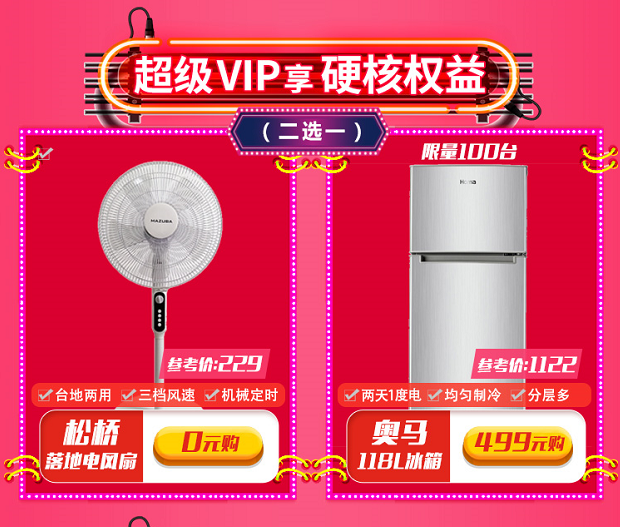 六大權(quán)益中,最核心的是,付費(fèi)VIP可以在直播間享受0元購(gòu)價(jià)值229元風(fēng)扇或499元購(gòu)買冰箱(二選一)的權(quán)利。其他五項(xiàng)權(quán)益分別是享大牌家電直播間專屬價(jià),得400元消費(fèi)券,辦聯(lián)通/電信套餐購(gòu)電器最高立減900元,免費(fèi)試用洗碗機(jī)、智能門鎖、垃圾處理器等家電、以及獲得直播間抽獎(jiǎng)資格。