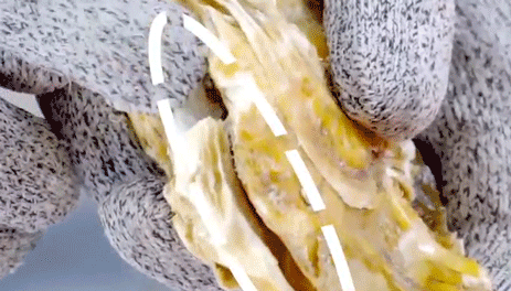 開生蠔特簡(jiǎn)單,趁其不備,找到生蠔邊緣,插它一刀,往邊上一擰,它就不“自閉”了!