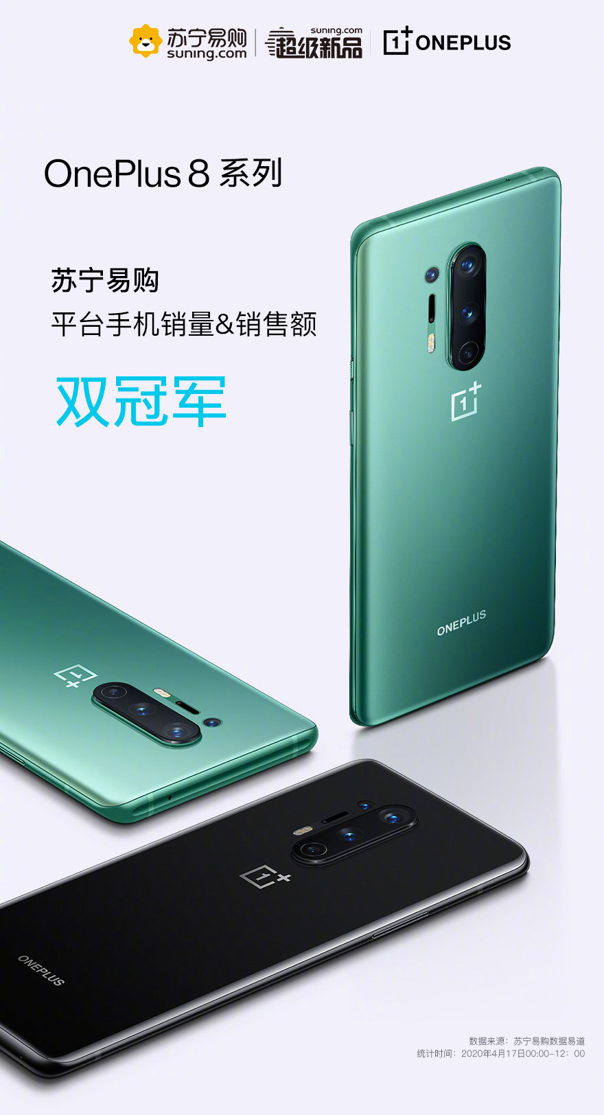 據(jù)悉,一加8系列新品開售當日,斬獲蘇寧平臺手機品類銷售量銷售額雙料第一。(吳艷 通訊員黃敏君)