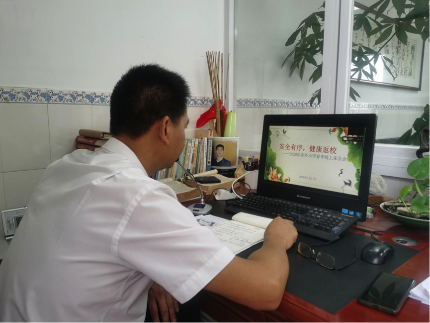 赤沙小學(xué)校長李錦賢通過企業(yè)微信召開復(fù)學(xué)前的線上家長會。