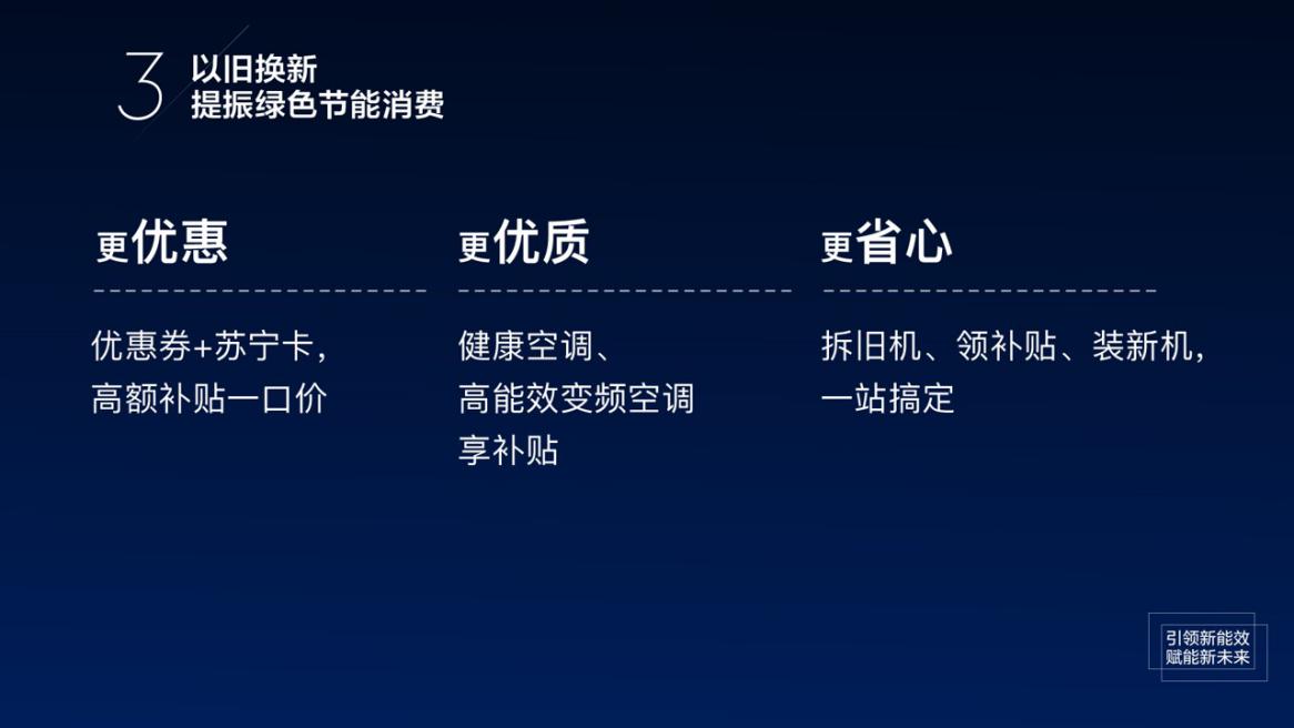 實(shí)現(xiàn)能效、健康升級,以舊換新是“剛需”。2020年,蘇寧空調(diào)重磅加碼以舊換新,舊機(jī)估值一口價,換新時購買高能效變頻產(chǎn)品與健康空調(diào)可享高額補(bǔ)貼,同時為解決流程繁瑣問題,將持續(xù)優(yōu)化拆舊機(jī)、領(lǐng)補(bǔ)貼、裝新機(jī)的一站式服務(wù),真正實(shí)現(xiàn)更優(yōu)惠、更優(yōu)質(zhì)、更省心。