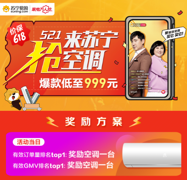 此外,此次搶空調(diào)期間,蘇寧還將以“萬人帶貨王”的帶單獎(jiǎng)勵(lì)活動(dòng),依托蘇寧推客、蘇小團(tuán)等社交平臺(tái),邀請(qǐng)廣大網(wǎng)友為空調(diào)帶貨。多款熱銷空調(diào)均設(shè)有高傭金獎(jiǎng)勵(lì),實(shí)際帶單數(shù)量最多和帶單數(shù)額最高的“帶貨王”均可獲得1臺(tái)空調(diào)作為獎(jiǎng)勵(lì)。