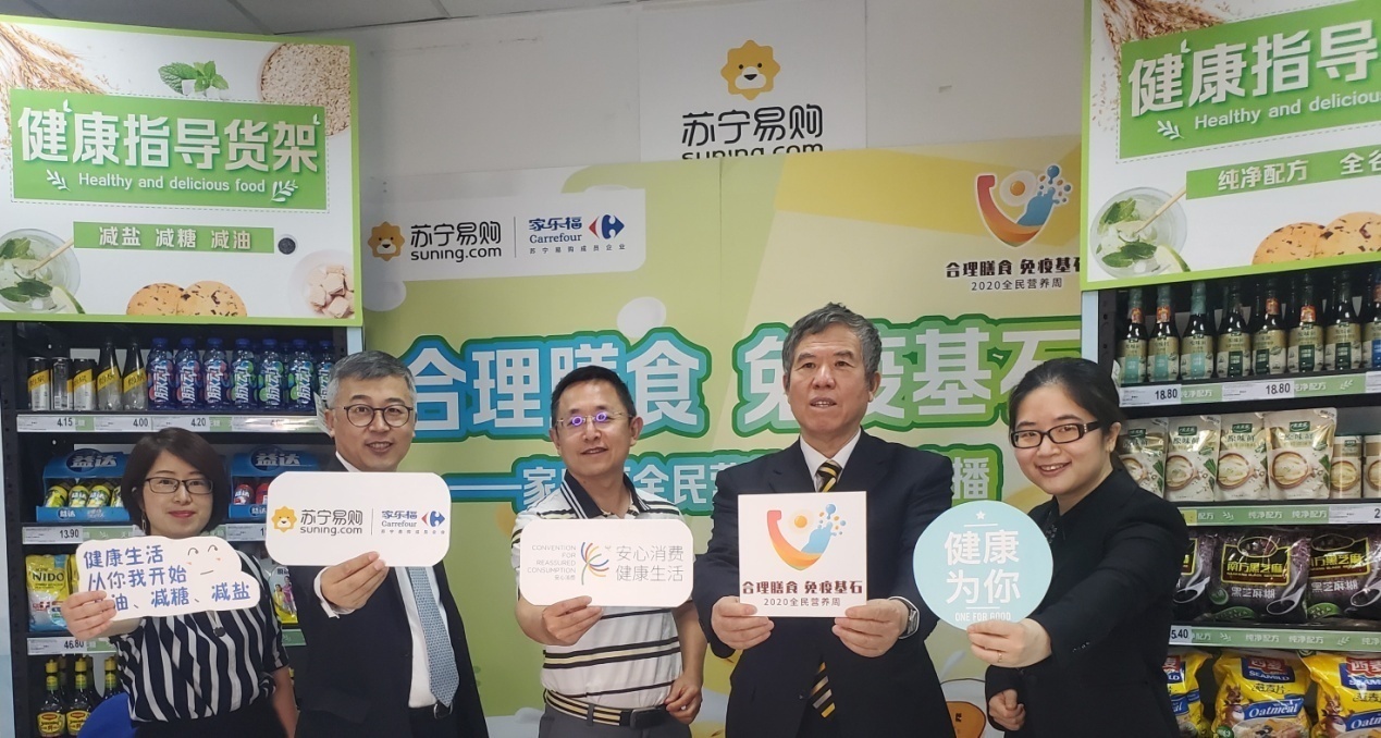 據(jù)中國(guó)營(yíng)養(yǎng)學(xué)會(huì)副理事長(zhǎng)楊曉光教授介紹,今年的全民營(yíng)養(yǎng)周的傳播主題為:“合理膳食免疫基石”。通過(guò)以“合理膳食免疫基石”為核心的宣傳教育,集中普及合理膳食對(duì)于增強(qiáng)免疫的基石作用和相關(guān)知識(shí)技能,重點(diǎn)宣傳奶類和大豆等優(yōu)質(zhì)蛋白來(lái)源,倡導(dǎo)樹(shù)立新食尚,推廣全民分餐制,摒棄食用野生動(dòng)物的陋習(xí),推動(dòng)國(guó)民健康飲食習(xí)慣的形成和鞏固,將合理膳食行動(dòng)落到實(shí)處。中國(guó)連鎖經(jīng)營(yíng)協(xié)會(huì)楚東副會(huì)長(zhǎng)指出,全民營(yíng)養(yǎng)周之際,蘇寧家樂(lè)福與CCFA消費(fèi)者科普項(xiàng)目合作,推出健康貨架,幫助消費(fèi)者提升選購(gòu)效率,踐行了蘇寧家樂(lè)福安心消費(fèi)公約承諾。消費(fèi)品論壇中國(guó)區(qū)徐揚(yáng)穎總經(jīng)理說(shuō),家樂(lè)福參與全民營(yíng)養(yǎng)周活動(dòng),推出健康指導(dǎo)貨架,科學(xué)地宣傳營(yíng)養(yǎng)健康知識(shí),真正體現(xiàn)了作為行業(yè)領(lǐng)先企業(yè)的社會(huì)責(zé)任初心。