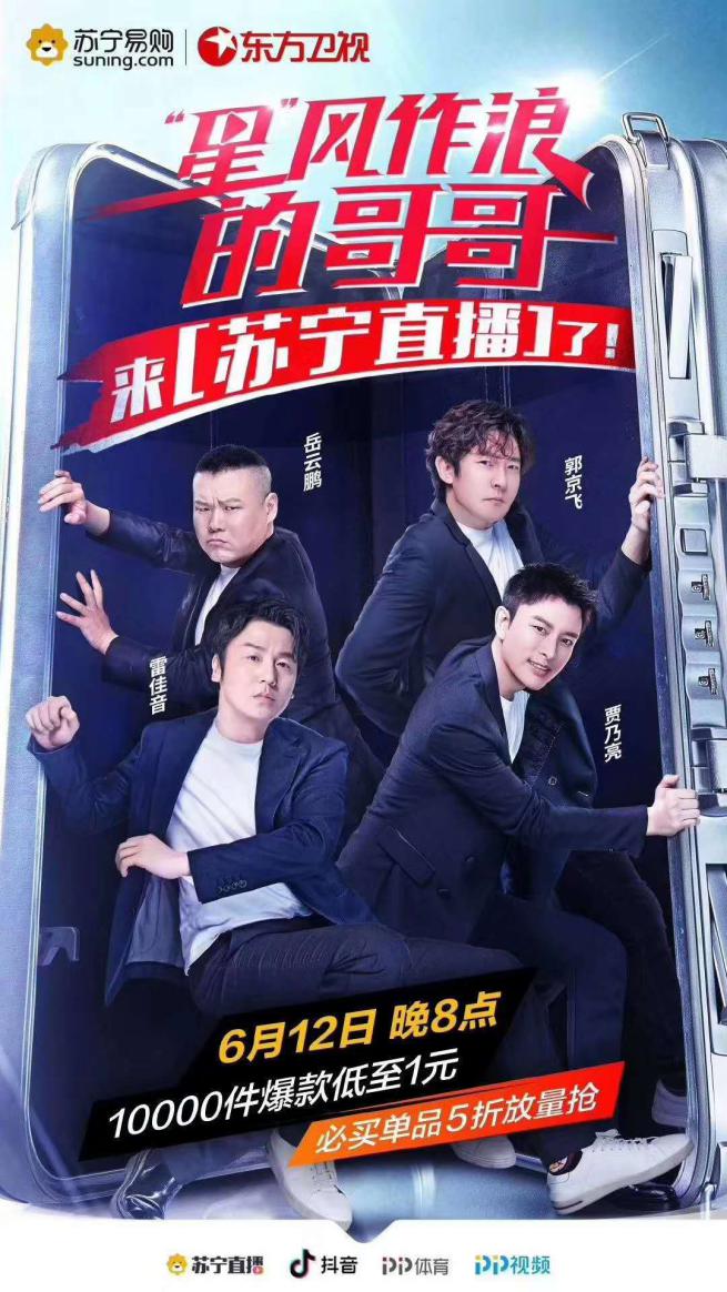 原來,蘇寧將在6月12日晚8點開啟以“星”風(fēng)作浪的哥哥為主題的直播活動,共計3個小時。正所謂娛樂購物兩不誤,極限挑戰(zhàn)將陣容搬到了直播間,4位明星搭檔主持,帶領(lǐng)用戶感受全方位的品質(zhì)化購物,煥新精彩生活。