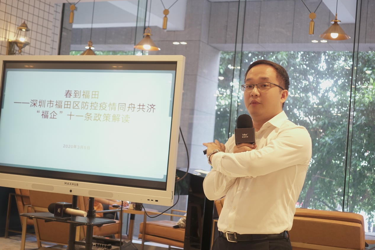 深圳市福田區(qū)財政局副局長林俊駒在分享會上指出,作為深圳最早研究提出企業(yè)復(fù)工復(fù)產(chǎn)的政府部門,深圳市福田區(qū)財政局第一時間啟動了應(yīng)急資金撥付機制和應(yīng)急政府采購機制,并快速印發(fā)工作指引,加強對各預(yù)算單位的業(yè)務(wù)指導(dǎo),以及對各單位和各區(qū)資金撥付的保障。據(jù)不完全統(tǒng)計,在疫情發(fā)生以來,深圳市福田區(qū)政府共投入4億多元疫情防控物資購置及醫(yī)療救治經(jīng)費等方面。在此次分享會上,面向入駐在BEEPLUS深圳財富大廈空間的企業(yè)會員,林俊駒副局長為與會企業(yè)解讀了福田區(qū)“福企”11條及新“福企”10條政策,強調(diào)區(qū)政府又另行投入10億支持福田區(qū)企業(yè)克疫前行。他表示,在未來,福田區(qū)政府將繼續(xù)為創(chuàng)新創(chuàng)業(yè)類企業(yè)提供強有力的政策支撐,加大支持力度。