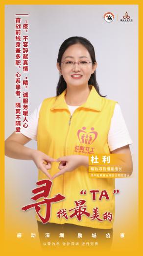 深圳社聯(lián)派駐光明區(qū)光明街道精防社工杜利,在一線戰(zhàn)疫中身兼多職、心系患者、隔離不隔愛。她不僅在深圳新冠肺炎確診數(shù)直線上升的敏感期,挺身而出主動為康復者親赴醫(yī)院領(lǐng)藥并送“愛”上門;白天更是積極開展社區(qū)巡查,幫助服務(wù)對象積極面對疫情;晚上再與防疫人員輪班值守、外出巡防,督促商戶們做好防護工作。