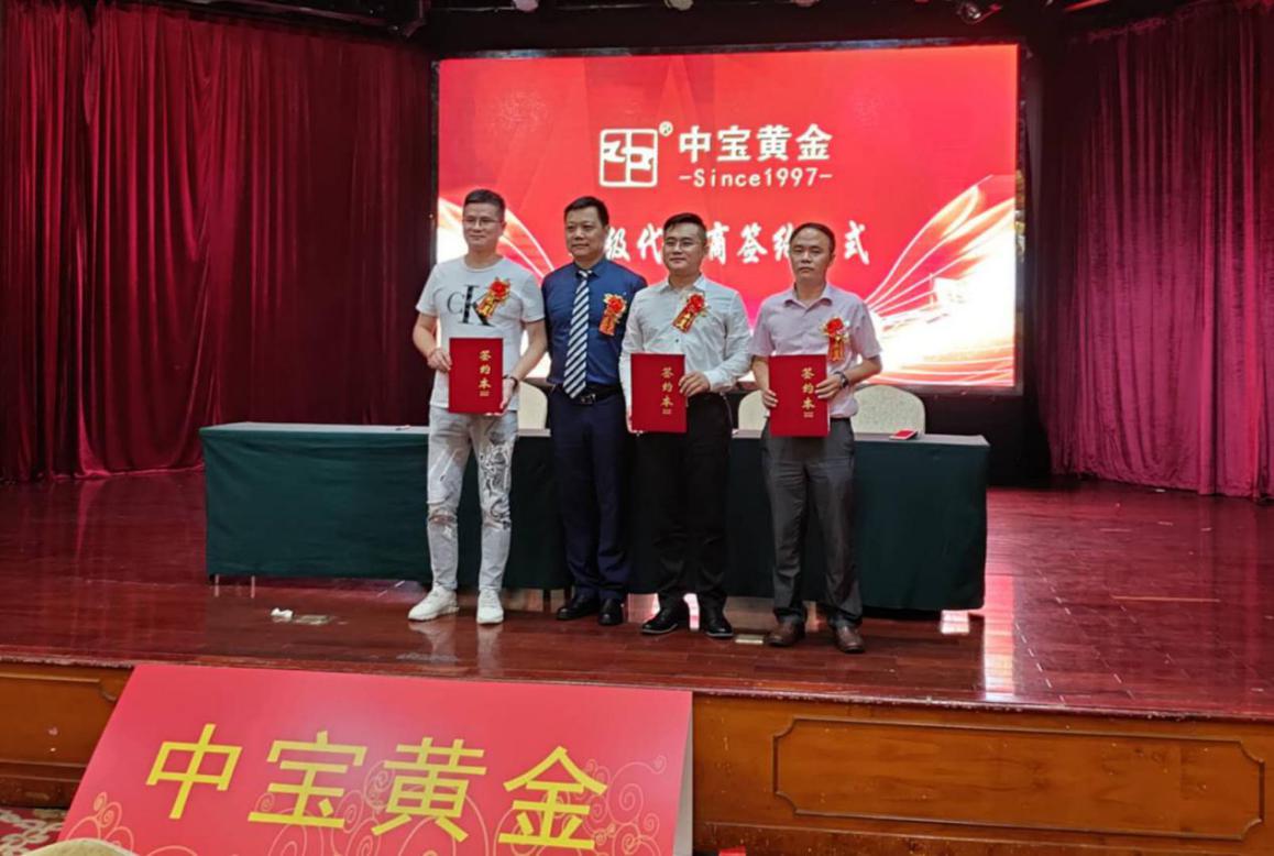 現(xiàn)場邀請一飛老師講解新零售,并現(xiàn)場開啟中寶黃金直播間。隨后還進行了簽約儀式,中寶黃金與中國工藝集團,阿瑪尼品牌,北京榮寶齋,達成戰(zhàn)略合作伙伴關(guān)系。