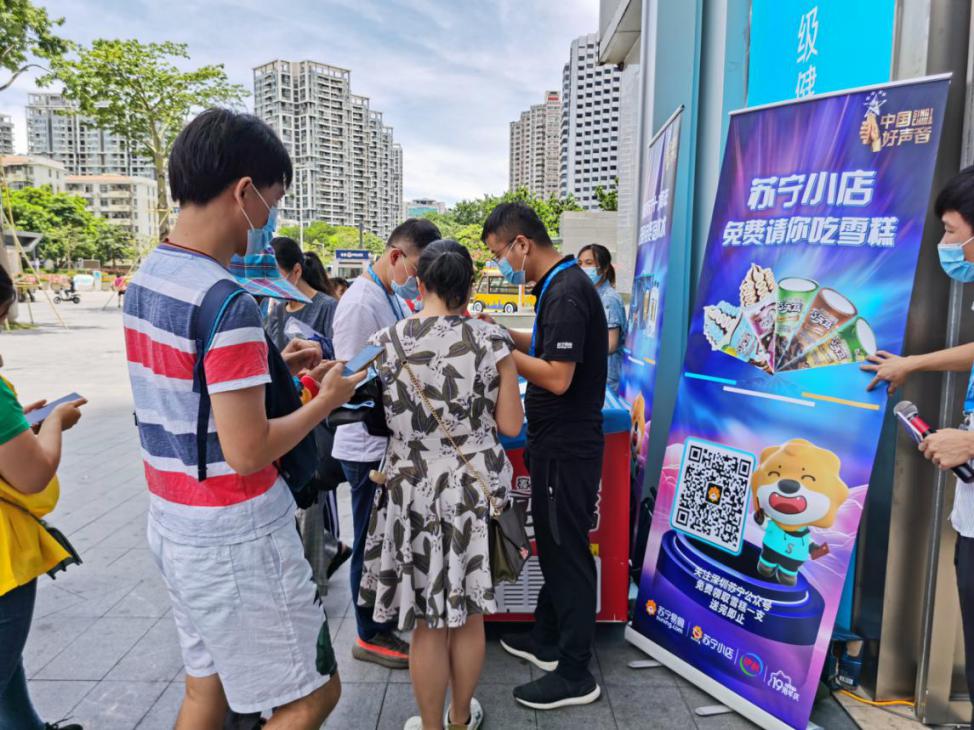 無獨(dú)有偶,群星廣場(chǎng)蘇寧易購(gòu)門店外的活動(dòng)賽場(chǎng)亦同步在火熱舉行中,7月18日-7月19日,蘇寧聯(lián)合美的一同舉辦中國(guó)好聲音復(fù)賽,活動(dòng)現(xiàn)場(chǎng)熱鬧非凡,做好防疫檢查工作的同時(shí),全力維護(hù)現(xiàn)場(chǎng)治安秩序穩(wěn)定,活動(dòng)現(xiàn)場(chǎng)蘇寧小店展開夏日送清涼活動(dòng),免費(fèi)送冰水雪糕,用“清涼一夏”的愛心之舉,給市民帶去一份夏日關(guān)懷。同時(shí)現(xiàn)場(chǎng)參賽選手三十余位埋藏著夢(mèng)想的音樂人在舞臺(tái)上縱情燃燒,深情獻(xiàn)唱,將活動(dòng)推向了高潮。一同成就粵港蘇寧十九周年最炫的夜晚。