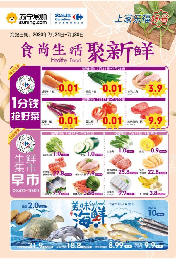 見圳客戶端·深圳新聞網(wǎng)2020年7月24日訊 為慶祝進(jìn)入中國(guó)市場(chǎng)25周年,家樂福為線上用戶帶來專屬福利—“1分錢每天搶好菜”。即日起,消費(fèi)者只需支付1分錢,即可輕松為全家?guī)Щ匾坏澜】岛貌耍p松享受便捷的品質(zhì)消費(fèi)。