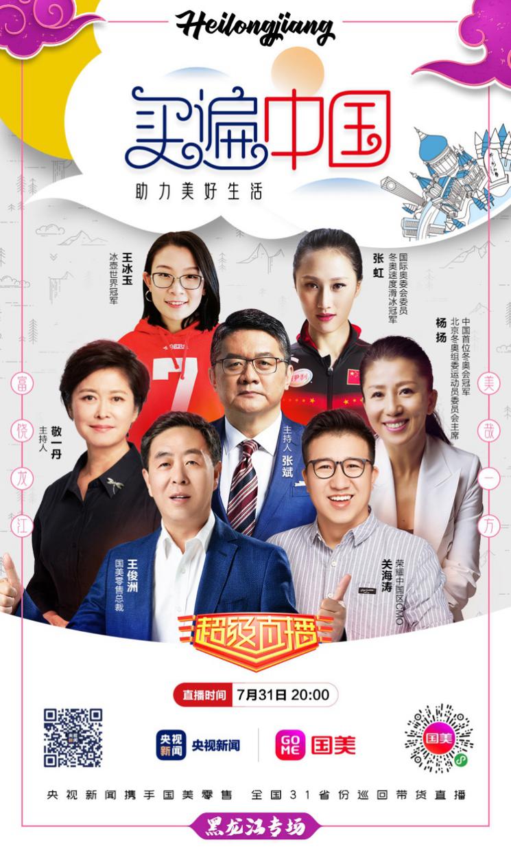 7月31日,“買遍中國·助力美好生活——央視新聞&國美零售全國31省份巡回帶貨直播”第二站聚焦黑龍江,回眸東北這片熱土。本次直播延續(xù)了國美一貫的開放與親民風格。央視體育主播張斌將與三位世界冠軍——中國首位冬奧會冠軍楊揚、冬奧速滑冠軍張虹、冰壺世界冠軍王冰玉及央視主持人敬一丹同臺帶貨,除了推薦國美熱銷的數(shù)十款家電及消費電子產(chǎn)品,更帶來了眾多黑龍江特色產(chǎn)品。