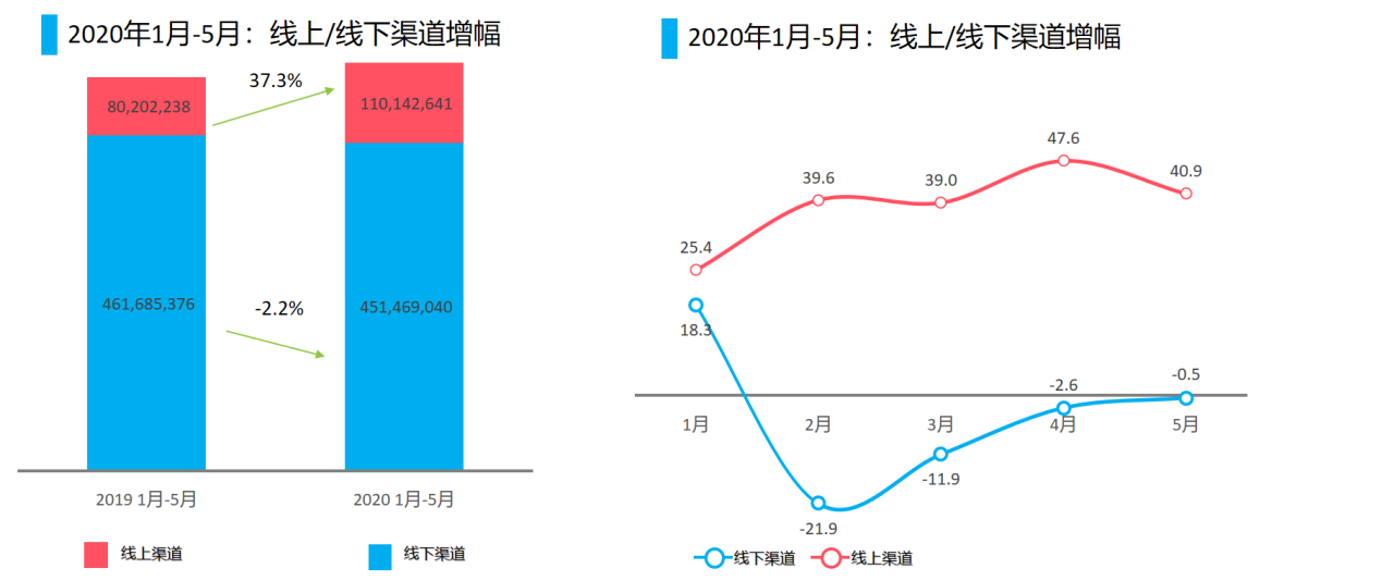 通過尼爾森監(jiān)測的市場數(shù)據(jù)發(fā)現(xiàn),在2019年快消品市場1.3萬億的總銷售額中,線下市場增速放緩2019年增速為4%,而線上市場增速超過30%。疫情初期,很多線下實(shí)體商店無法營業(yè),讓原本線下市場呈現(xiàn)下降趨勢;各品類廠商為了解決困境,紛紛拓展線上渠道。