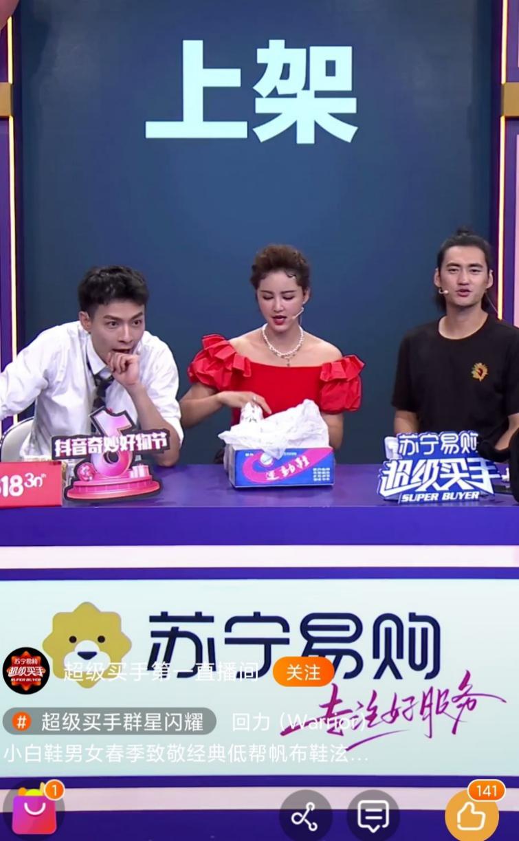 超級秀舞臺與“超級買手”直播間首度實現(xiàn)連麥,流量“打穿”效果明顯。在蘇寧易購與抖音雙平臺的連播中,直播間全場補(bǔ)貨76次,群星買手人均喜提39次秒空。