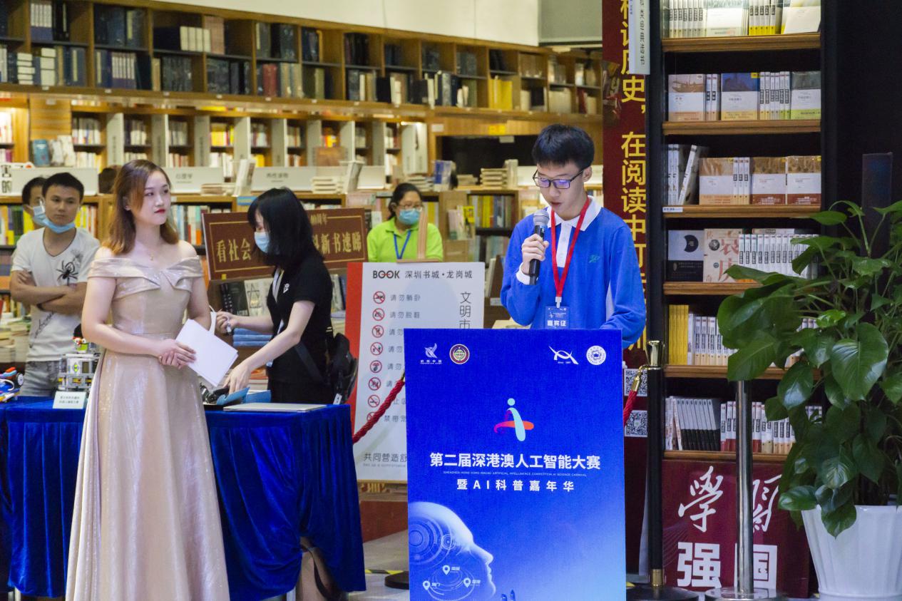 發(fā)布會現(xiàn)場,主辦方還特別邀請了首屆深港澳人工智能大賽冠軍選手——南科大附屬中學(xué)的張繼元同學(xué),作為優(yōu)秀參賽代表發(fā)表感言。在首屆大賽中,張同學(xué)獲得了有目共睹的成長,他表示:“感謝深港澳人工智能大賽暨AI科普嘉年華活動,給予了深港澳三地青少年同臺競技的平臺,讓三地青少年有了了解祖國發(fā)展歷程以及現(xiàn)在的輝煌成就的機(jī)會,這同時也增強(qiáng)了我們年輕一輩的民族自尊心,自己在機(jī)器人大賽所倡導(dǎo)的創(chuàng)新教育理念下,堅持不懈,努力奮斗,報效祖國,回報父母,服務(wù)社會”。