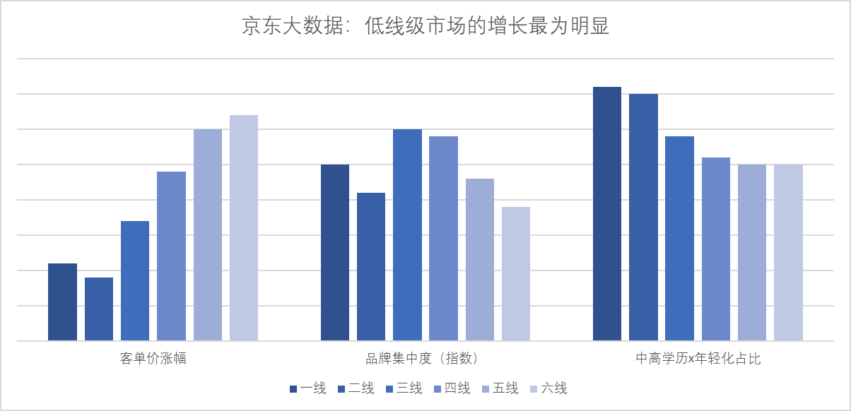 京東大數(shù)據(jù)從“客單價(jià)漲幅、品牌集中度、高學(xué)歷及年輕人占比”等指標(biāo)對(duì)1 -6線消費(fèi)者的月餅購(gòu)買(mǎi)數(shù)據(jù)進(jìn)行分析發(fā)現(xiàn),京東月餅消費(fèi)者大學(xué)及以上學(xué)歷占比70%;90后用戶占比65%;中高消費(fèi)水平用戶占比98%;此外需要注意到中低線市場(chǎng)“小鎮(zhèn)”中等收入人群的崛起,這些年輕化、高學(xué)歷、懂品味的人群正在引導(dǎo)整體消費(fèi)市場(chǎng)從追求性?xún)r(jià)比到品牌、品味等更高追求的轉(zhuǎn)變。