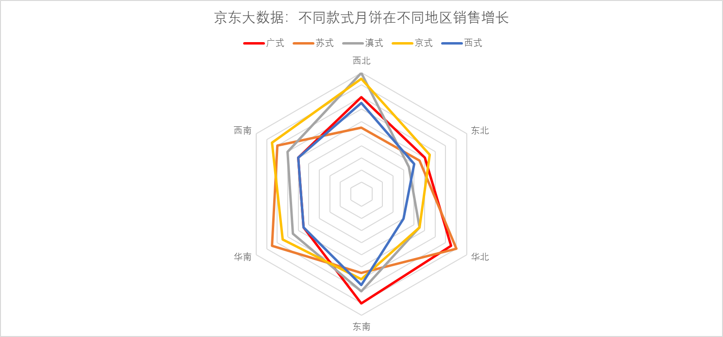 此前有報(bào)告顯示,消費(fèi)者購(gòu)買(mǎi)月餅渠道更多樣化,已然形成線上為主、線下為輔的趨勢(shì)。而隨著京東渠道的滲透、物流的下沉,很多偏遠(yuǎn)地區(qū)的線上消費(fèi)比例也越來(lái)越大,比如西北地區(qū)消費(fèi)者購(gòu)買(mǎi)廣式和京式月餅的同比增長(zhǎng)分別達(dá)160%和190%,線上銷(xiāo)售的方式打破了區(qū)域間的地理限制,跨區(qū)域嘗鮮成為潮流,而且促進(jìn)了全國(guó)各地節(jié)( chi)日( huo)的交流。