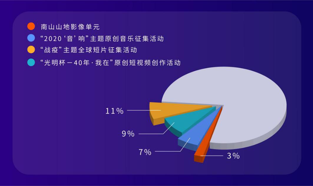 此外,短片節(jié)首次設(shè)立的“2020‘音’響”主題原創(chuàng)音樂(lè)征集活動(dòng)在全球范圍內(nèi)共收到參賽作品447部,并將圍繞“最佳原創(chuàng)視頻配樂(lè)”、“最佳原創(chuàng)短片配樂(lè)”、“最佳原創(chuàng)短視頻配樂(lè)”和“優(yōu)秀原創(chuàng)配樂(lè)”等,評(píng)選4大類(lèi)型最佳入圍作品。