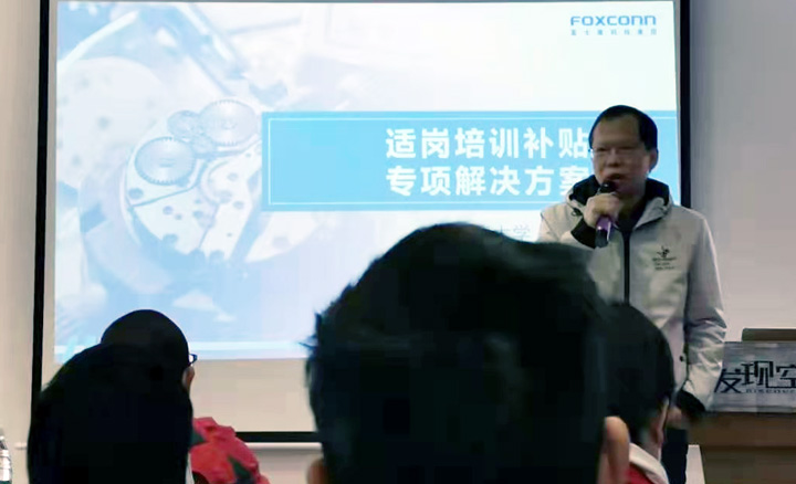 富士康大學(xué)資深專理李治佑帶來(lái)了適崗培訓(xùn)補(bǔ)補(bǔ)貼的專項(xiàng)解決方案,李專理表示,富士康大學(xué)會(huì)開(kāi)放更多的課程資源,賦能富友制造企業(yè),促進(jìn)灣區(qū)制造企業(yè)筑基升級(jí)。