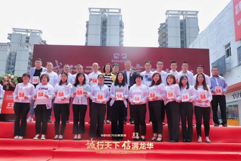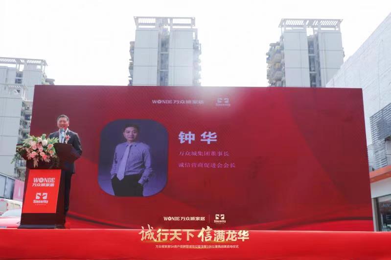 儀式上,誠商會創(chuàng)會會長、萬眾城集團董事長鐘華致歡迎辭,他說,萬眾城集團自2009年開始做誠信建設,創(chuàng)立了“誠信基金”“誠信沙龍”“5A級誠信商戶評選”三板斧,將商戶有效投訴從十二年前的91起,商戶自覺誠信經(jīng)營,往后每年未超過5起。萬眾城既是誠信建設者,也是受益者,投訴率和理賠率逐年下降,商家營業(yè)額逐年上升。經(jīng)過嚴格的篩選和評審,萬眾城家居評出了2020年度5A商戶共346戶,并在當天的儀式上給20名5A商戶代表授牌。
