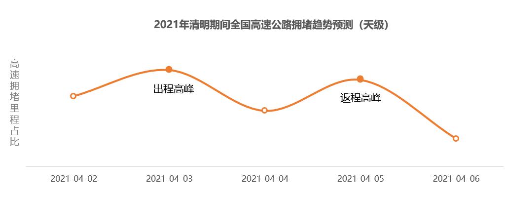 具體時段方面,預(yù)計2021年4月2日(清明小長假前一天)15時開始,全國高速交通壓力逐漸增大,20時至23時擁堵程度較高;4月3日(清明小長假第一天)8時至12時高速迎來出程擁堵高峰,預(yù)計10時至11時達峰值,4月5日(清明小長假最后一天)14時至19時為高速返程擁堵高峰。
