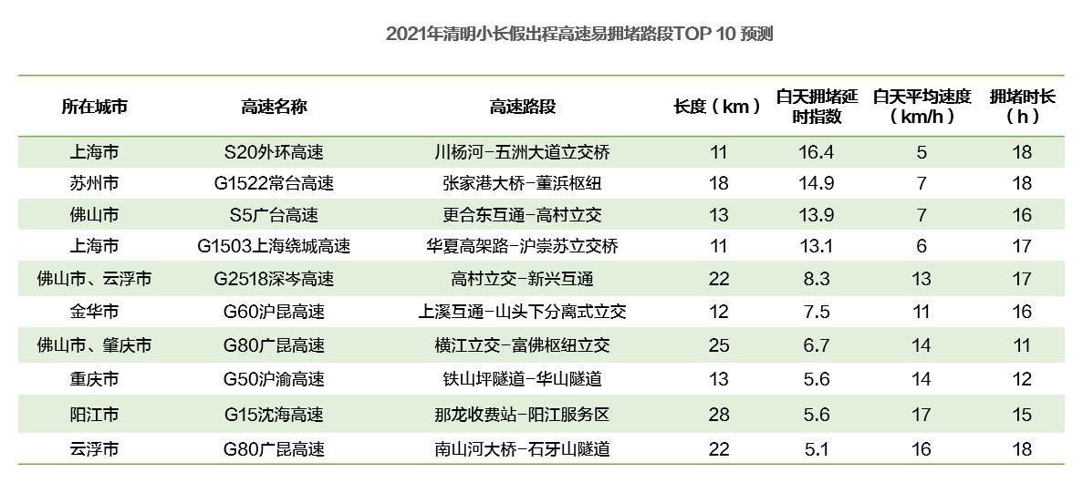 高速擁堵路段:上海S20外環(huán)高速和S51肇陽高速云浮段預(yù)計最堵
