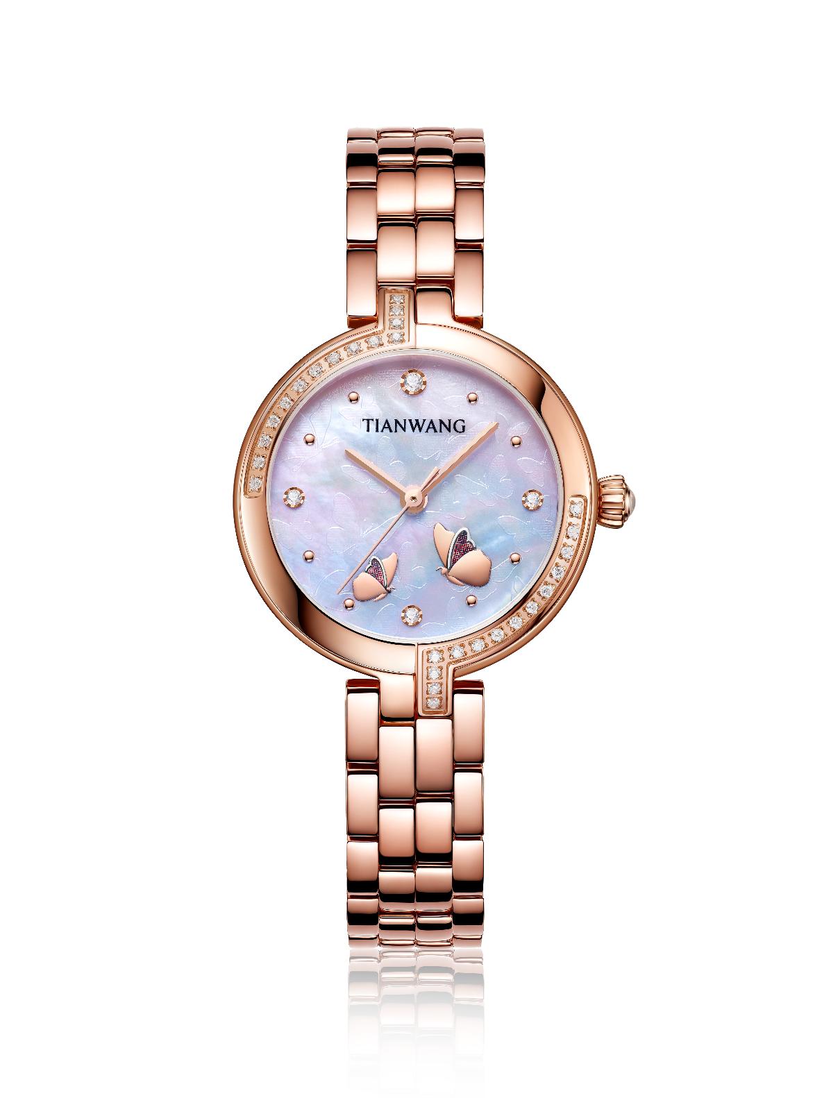 這次合作的腕表,沿襲了天王表的精品品質(zhì)和設(shè)計(jì)美學(xué),有點(diǎn)“小確幸”的風(fēng)格,整體很秀氣但是細(xì)節(jié)都誠意滿滿。表是蝴蝶的天空,指針是蝴蝶的舞步。表盤采用蝴蝶壓印貝母,在藍(lán)寶石玻璃表鏡下,兩只立體蝴蝶翩然起舞,人如蝴蝶,蝴蝶像人,都迷戀這花花世界,想要縱情暢游其中。腕表刻度和表圈由璀璨皓石點(diǎn)綴,3點(diǎn)、6點(diǎn)、9點(diǎn)、12點(diǎn)使用較大皓石,使得整個(gè)表盤錯(cuò)落有致,富有層次感。搭配夢(mèng)幻南瓜把的,極具浪漫色彩。玫瑰金色不銹鋼表殼,給人以優(yōu)雅炫目之感,質(zhì)感鋼帶,光澤度明亮,搭配不銹鋼蝴蝶扣,錦上添花,佩戴效果自然舒適。
