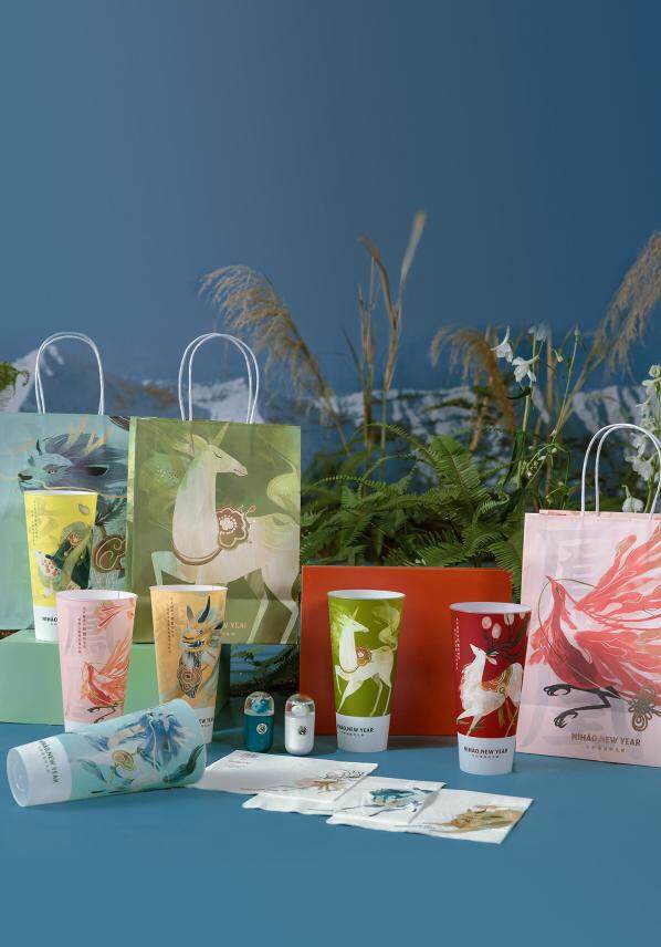 對于品牌×明星的聯(lián)名來說,調(diào)性契合是聯(lián)名活動不可或缺的"出圈基因"。而奈雪的茶霸氣玉油柑與樂隊五條人,看似來自不同次元,實則都有大膽、堅持、向上、樂觀的底色,而非將不搭嘎的兩個品牌生硬地“拉郎配”。奈雪還圍繞聯(lián)名別出心裁地推出了五條人主題的立牌、貼紙和堆頭,甚至將五條人標志性的“紅色塑料袋”做成了極具個性且生物可降解的奈雪打包袋,可謂細節(jié)之處見真章。