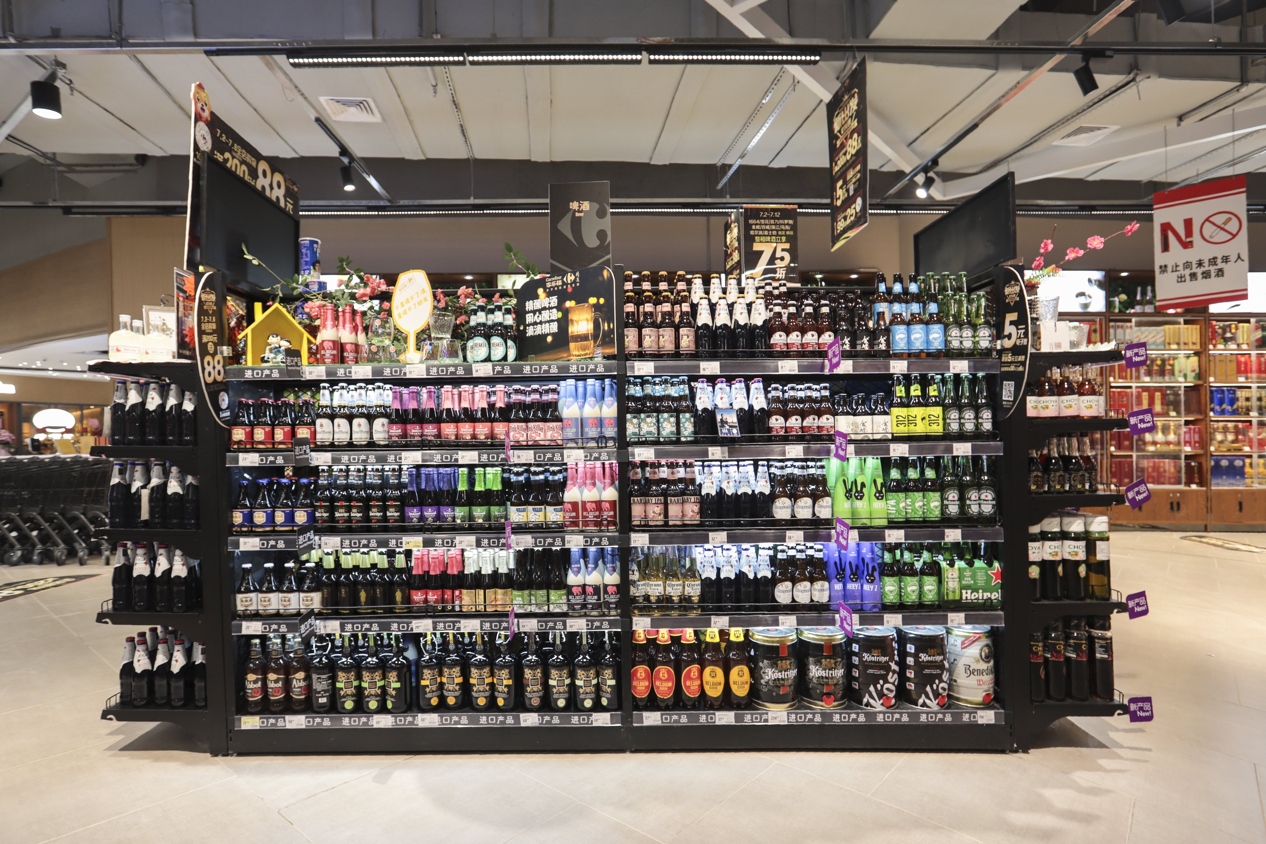 “?!わ嬈佛^”特色酒飲/沖調(diào)區(qū),酒水區(qū)域有豐富的種類,包括除了茅臺(tái),白酒有大家熟知的五糧液、劍南春、習(xí)酒共128個(gè)單品,老酒新貴、高端洋酒、自飲送禮宴客各種場(chǎng)合的價(jià)位選擇都有,可謂是CBD里品類齊全的買酒首選場(chǎng)所,198萬的茅臺(tái)酒王單品亮相酒水區(qū)專柜更是為飲品館增添一抹亮色。