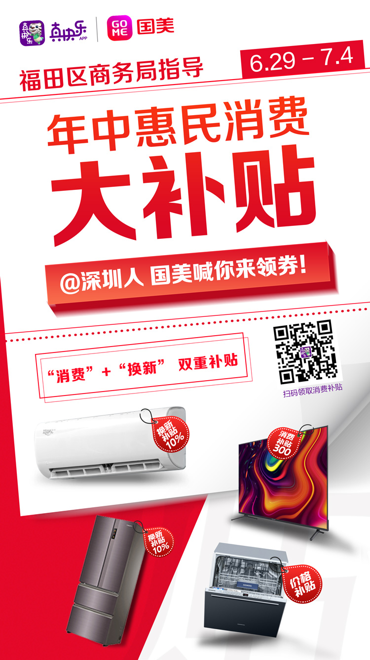 據(jù)悉,為獻(xiàn)禮建黨100周年,在深圳市福田區(qū)商務(wù)局的指導(dǎo)下,深圳國美和“真快樂”APP誠意滿滿的推出了“年中惠民消費大補(bǔ)貼”活動,國美這次“年中消費大補(bǔ)貼”將從6月21日起一直延續(xù)到7月4日,4500萬補(bǔ)貼發(fā)放,助力深圳地區(qū)消費者升級品質(zhì)生活。而且所有活動商品原有低價基礎(chǔ)上進(jìn)行補(bǔ)貼直降,還有超多驚喜好價等你來搶,此波羊毛絕對放心薅,一起來看看吧!