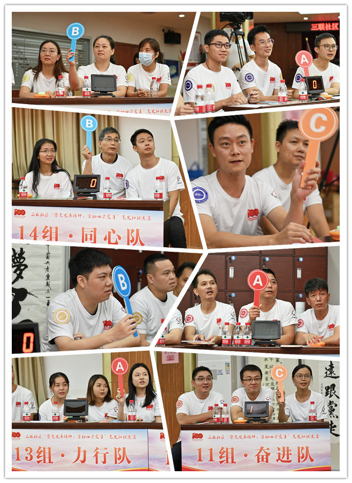 此次比賽分為初賽和決賽兩個階段,初賽為兩兩PK晉級制,來自社區(qū)黨委下屬各黨支部、轄區(qū)各共建單位等組成的14支代表隊分七組進行了激烈的角逐,最終7支隊伍脫穎而出,登上決賽擂臺。