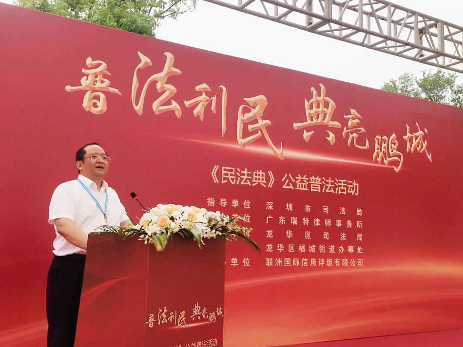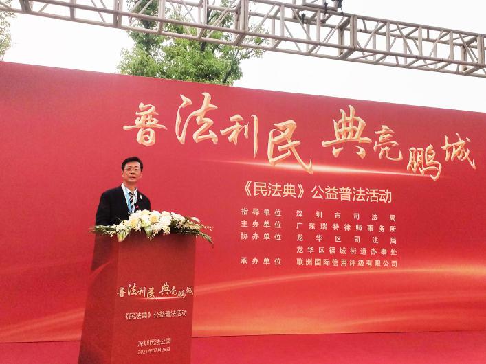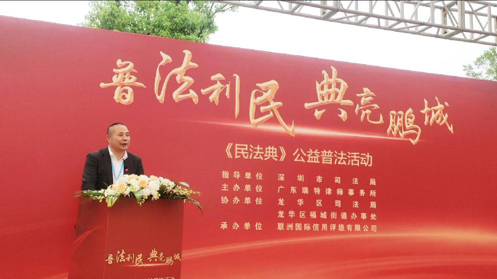 讀特客戶(hù)端·深圳新聞網(wǎng)2021年7月29日訊 (記者 常軍平) 昨日,由深圳市司法局指導(dǎo)、廣東瑞特律師事務(wù)所主辦、龍華區(qū)司法局、龍華區(qū)福城街道辦事處、深圳潮青會(huì)協(xié)辦、聯(lián)洲國(guó)際信用評(píng)級(jí)有限公司承辦的“普法利民,典亮鵬城”《民法典》公益普法活動(dòng)在龍華舉行。