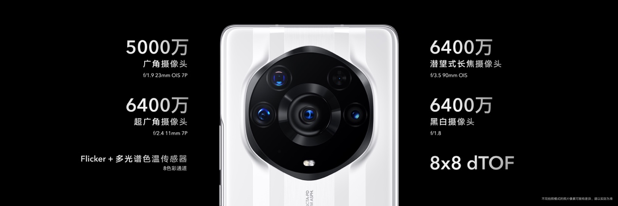 影像方面,榮耀Magic3至臻版打破手機鏡頭天花板,突破性地采用了多主攝設(shè)計。在與榮耀 Magic3 Pro采用同樣的業(yè)界領(lǐng)先6400萬潛望式長焦鏡頭和6400萬黑白鏡頭基礎(chǔ)上,榮耀 Magic3至臻版將5000萬像素超大底主攝升級為索尼 IMX700,傳感器尺寸達到1/1.28英寸,擁有業(yè)界領(lǐng)先的感光度(ISO),成像解析力、暗光拍攝能力更強。而超廣角微距鏡頭,也從1300萬像素,升級為業(yè)界領(lǐng)先的6400萬像素126°超大廣角微距鏡頭,能完美呈現(xiàn)廣闊空間中整個建筑、地標,亦能捕捉2.5cm近距離下的微小細節(jié),提供肉眼無法看到的創(chuàng)意視角。多主攝計算攝影,實現(xiàn)多焦段高清影像。