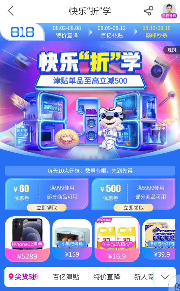 以818大促為例,8月12日至18日期間,“真快樂”以“特價(jià)直降”“百億津貼”和“巔峰秒殺”三重活動(dòng)讓利消費(fèi)者,一重更比一重優(yōu)惠?;顒?dòng)福利覆蓋食品酒水、服飾鞋包、家居家裝、日用百貨、母嬰玩具、美妝個(gè)護(hù)、家用電器等全品類品質(zhì)好物。與此同時(shí),消費(fèi)者不僅可以享受“真快樂”提供的折扣優(yōu)惠,還可以通過國(guó)美“折上折A PP”領(lǐng)券,再次享受優(yōu)惠,實(shí)現(xiàn)折上再折,折上再減。無需費(fèi)心拼單、湊單,一鍵領(lǐng)取優(yōu)惠券,折扣即可到手。