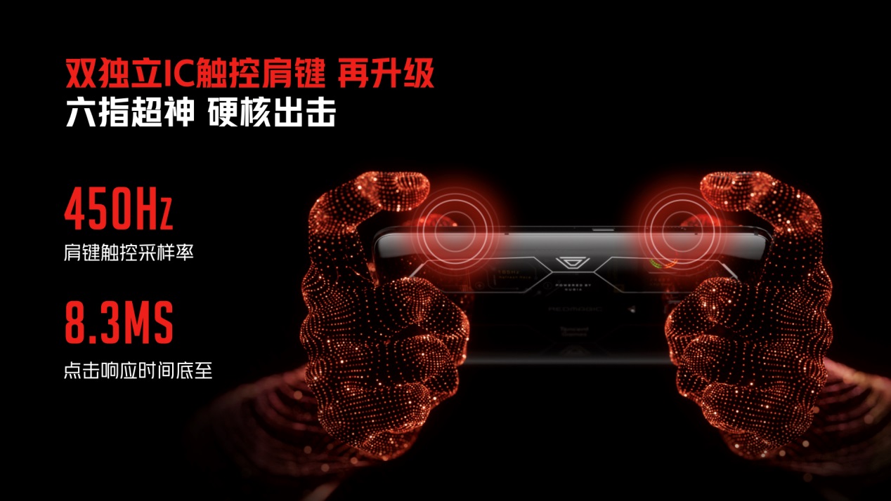 將“肩鍵”帶入手機的紅魔本次采用響應速度最快的450Hz觸控雙肩鍵,新增500Hz觸控腰鍵,為玩家解鎖更多游戲新姿勢,全新的觸控游戲體驗拓展了手機游戲的可玩性,豐富的自定義設置和手勢讓玩家可以不同習慣進行游戲,小白雙指即可玩出高端操作,大神六指成就極限超神。