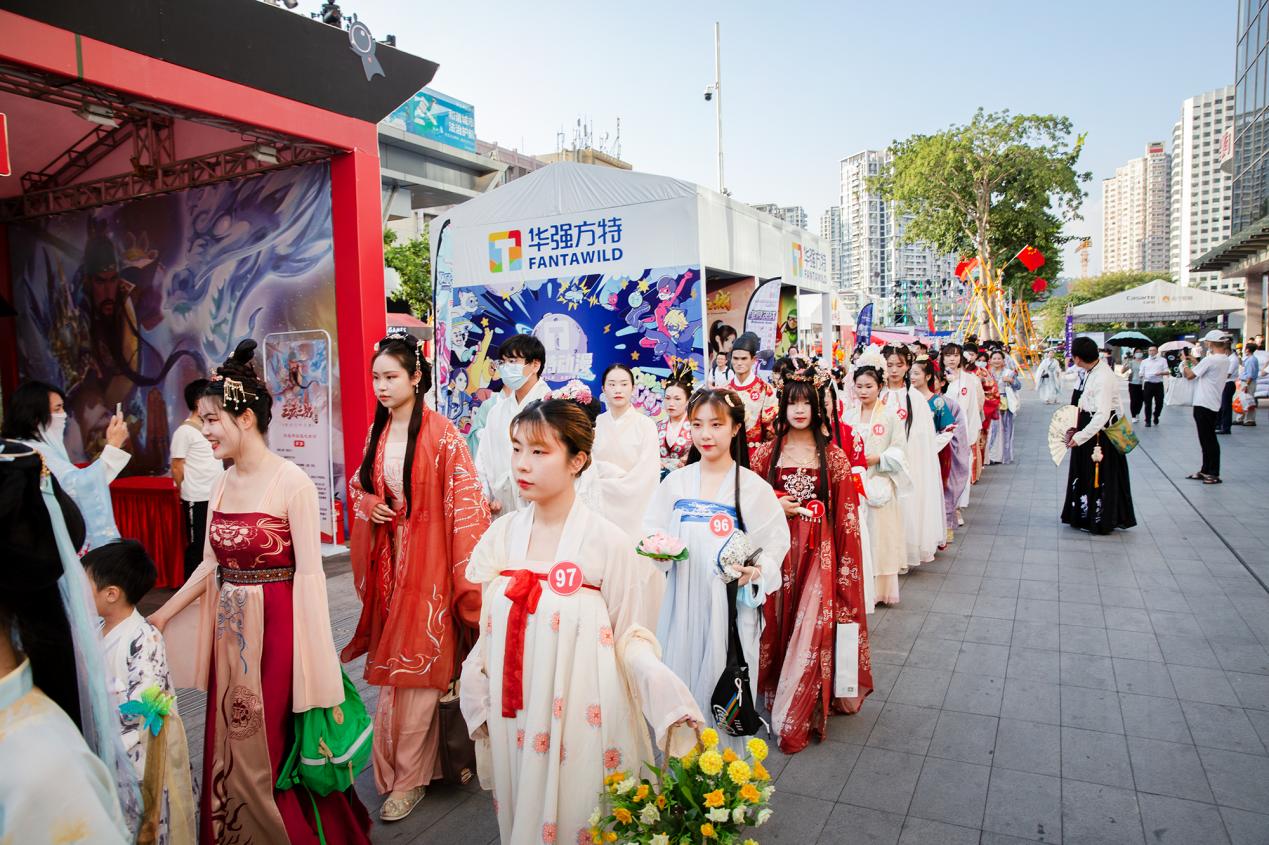 為了提升夜間經(jīng)濟業(yè)態(tài),節(jié)展期間電玩節(jié)組委會在每天的16時至21時共計舉辦了三十余項不同類型的賽事活動,包括COSPLAY大賽、紅白歌會、國風(fēng)國潮大賽、“第四屆王者榮耀全國大賽城市賽”“英雄聯(lián)盟 ·金鏟鏟之戰(zhàn)線下體驗派對”、主街游戲競技場、COSPLAY巡游、漢服巡游、國風(fēng)走秀等。同時還邀請知名COSPLAY團(tuán)、人氣COSER熊祁、唯安、組合844樂隊、七朵家族舉辦了專場見面會和簽售會,吸引了大量觀眾駐足圍觀,臺上臺下熱情互動,掀起陣陣活動高潮,以沉浸式的體驗帶動新消費,打造深圳夜間消費新地標(biāo)。