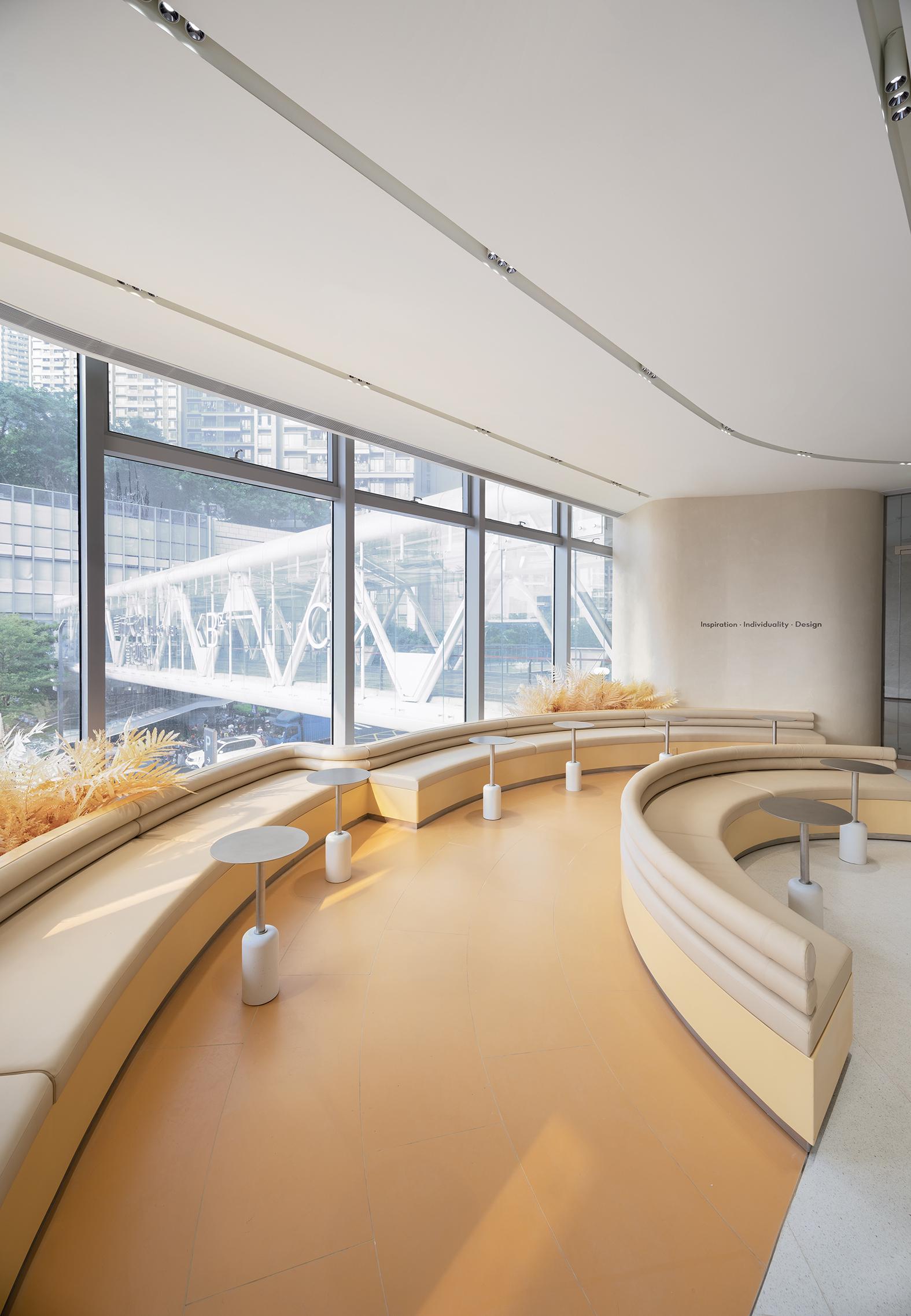 走進(jìn)喜茶深圳壹方天地C區(qū)店,通透的全落地玻璃外立面,讓藍(lán)天白云似乎觸手可及;渾然一體的圓潤(rùn)吧臺(tái),讓整個(gè)空間更為純粹;橙白漸變的門(mén)店主色調(diào),為深圳增添了一份溫柔的秋意。門(mén)店整體布局采用了圍合式布局,圍繞中心的水吧,從外立面到客區(qū)桌椅的布置都以圓弧形態(tài)進(jìn)行圍合,隨性且愜意。